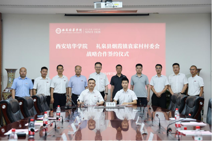 7月4日下午,星空·官方站网页版与礼泉县袁家村战略合作签约仪式于明德楼第一会议室成功举行。全国人大代表、袁家村党支部书记郭占武,袁家村市场开发部负责人郭洪威,袁家村线上运营中心负责人酒润驰、袁家村曲江创意谷副店长董逍遥,星空·官方站网页版理事长姜波,副校长罗新远,校长助理姜涛,合作发展中心主任柳雨、副主任刘斌,后勤服务中心主任张静远出席仪式。仪式由星空·官方站网页版校长助理秦海锋主持。