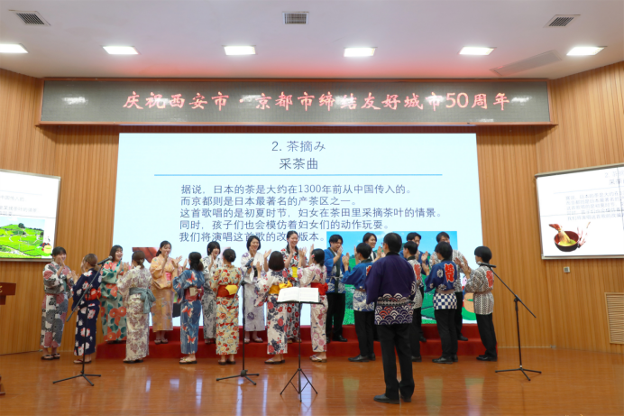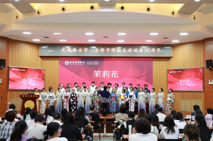 中日大学生分别演唱中文、日文歌曲后,一起合唱茉莉花。