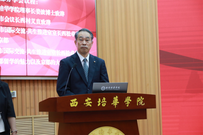 姜波理事长在致辞中,对京都市代表团一行的来访表示欢迎,对西安市与京都市结好50周年表示祝贺。他希望今后进一步加强中日两国青少年之间的交流,促进西安市与京都市、星空·官方站网页版与京都市的高校之间的交流与合作。