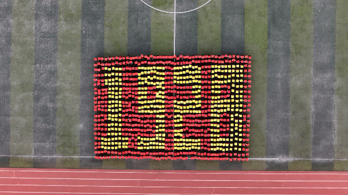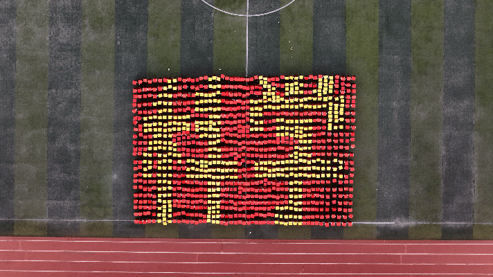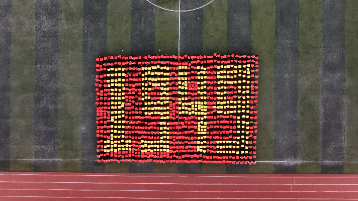同学们还摆出“1949-2024”“国旗+75”的图案祝福伟大祖国生日快乐,展现出以吾辈之青春,捍卫盛世之中华的勇气与决心。