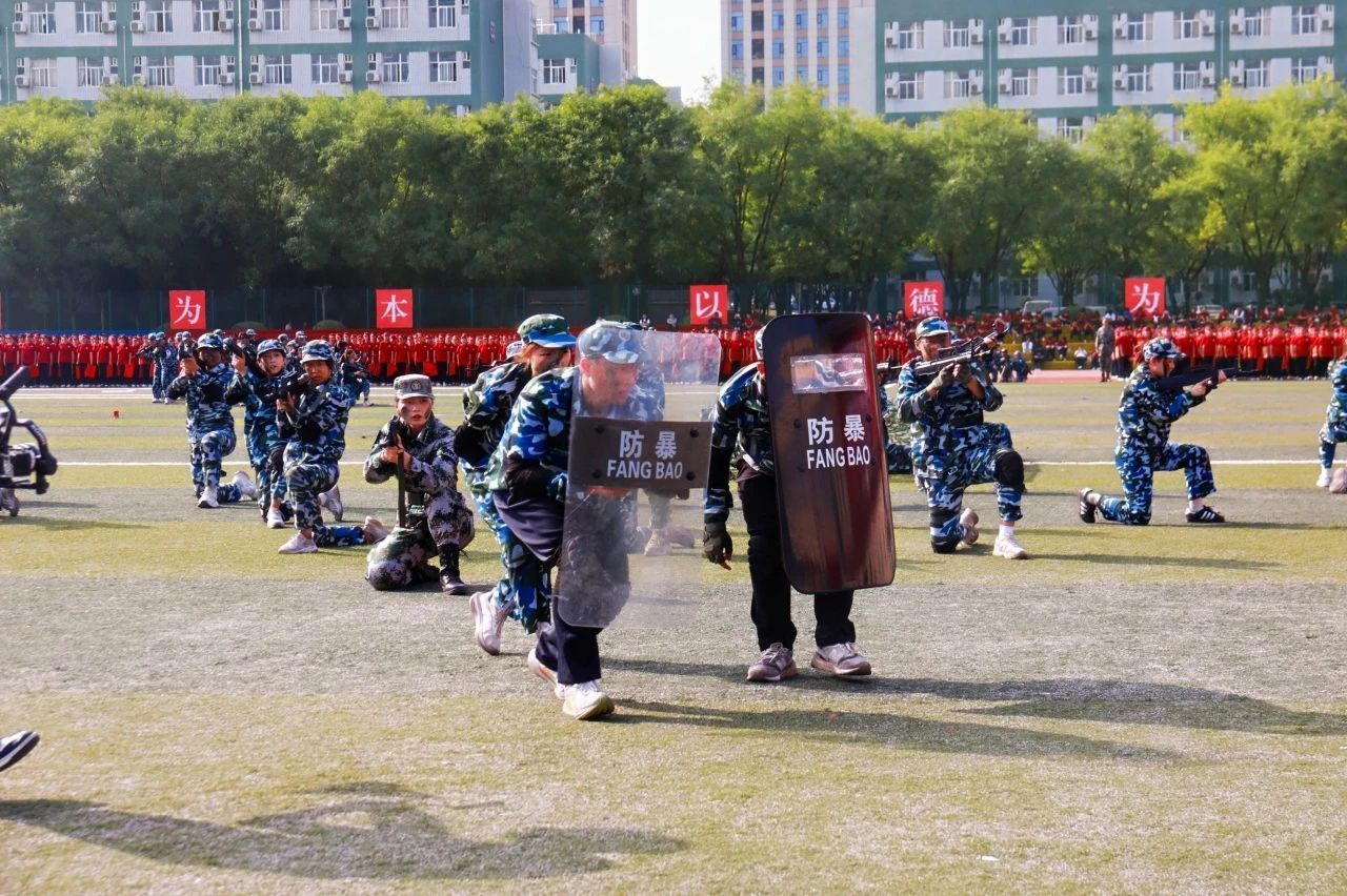 汇报表演中同学们展示了行如流水,整齐划一的匕首操表演、战术表演和拳术。个个精神抖擞,目光如炬,一招一式尽显军人本色和青春锐气。
