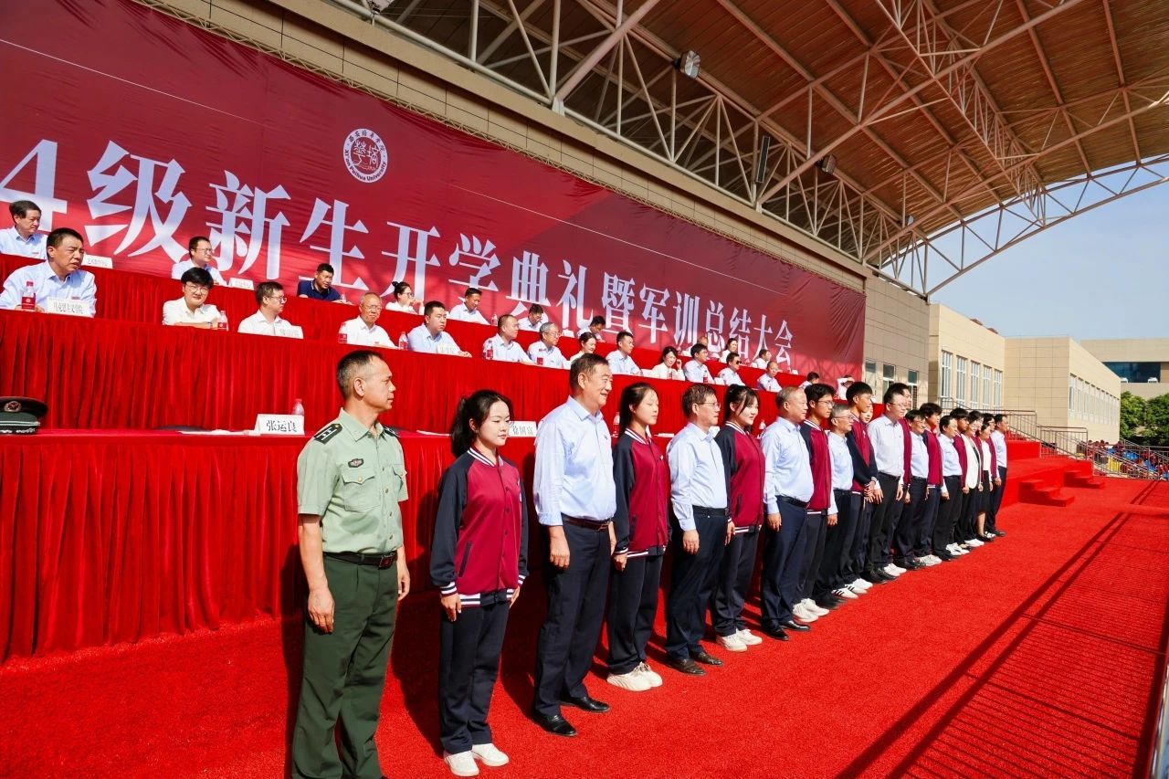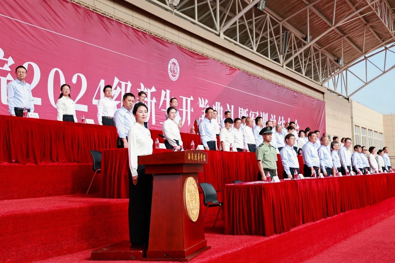 随着国旗护卫队队员们矫健的步伐,大会在雄壮的国歌声中拉开帷幕。五星红旗冉冉升起,全体师生面向国旗行注目礼。那一刻,爱国之情油然而生。校歌随后响起,铿锵有力的歌声在校园里回荡,激励着每一位新生以更加饱满的热情,投入到未来的学习生活中。