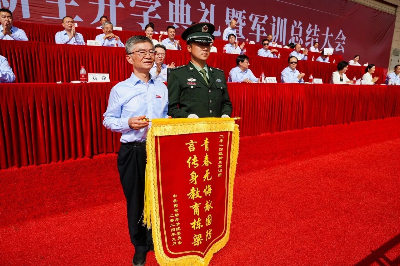 青春无悔献国防,言传身教育栋梁。学校从大学生退役士兵中挑选优秀学生组建教官团队开展军训,他们从同学中来,又回到同学中去,既发挥着“青春榜样”和“朋辈示范”的引领作用,又以过硬的军事素养、宝贵的精神品格、优良的调度能力、饱满的工作热情,确保了军训工作的顺利开展,学校党委书记刘锋向军训团颁发锦旗,以示嘉奖。