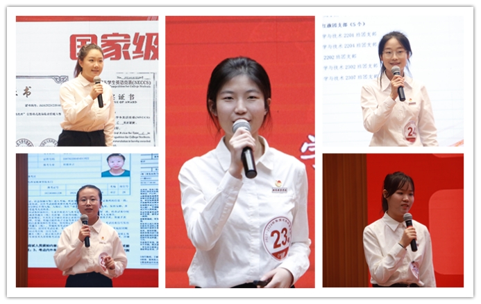 评委老师与各位候选人进行提问与交流环节。各位候选人答辩结束后,评委老师结合候选人情况进行提问与交流,启发与引导候选人为台下的同学们总结和分享成功经验,面对评委老师们的提问,候选人信心满满,沉着应答,展示出自身良好的语言表达能力和逻辑思维能力。