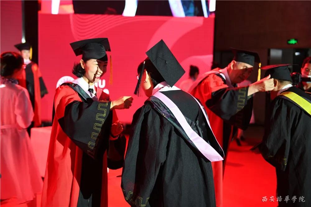 伴随着优雅动听的音乐,全体学位委员会委员为毕业生代表拨穗,颁发毕业证书、学位证书