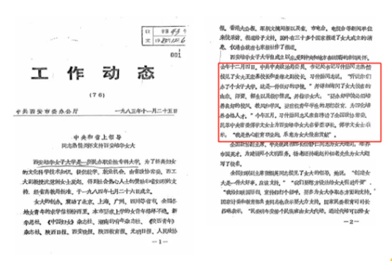 中共西安市委1985年第76期《工作动态》刊发习仲勋同志接见星空(中国)体育网女大校领导内容