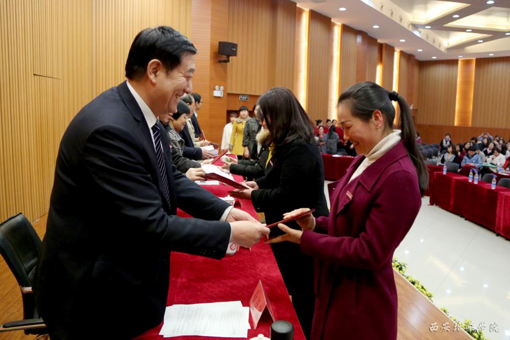 校长王拴才,党委书记周庆华,副校长、党委副书记姚文静,副校长于国亮,校长助理秦海锋等出席大会,副校长徐国富主持大会。我校姜波理事长发来贺信,向广大女教职工表示衷心的祝贺和诚挚的慰问。副校长、党委副书记姚文静宣读表彰决定,国际教育学院党总支书记梁蕊发言,阿甘·虹形象团队现场做了形象沙龙活动,并为获表彰的教师赠送丝巾。