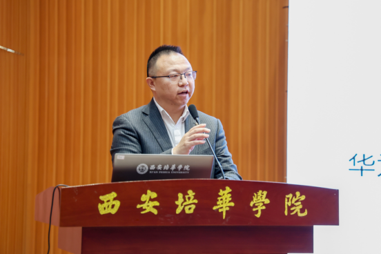 华为陕西政企教育行业解决方案总监尹文凯先生作《人工智能风口下的数据资产管理之路》主题演讲。