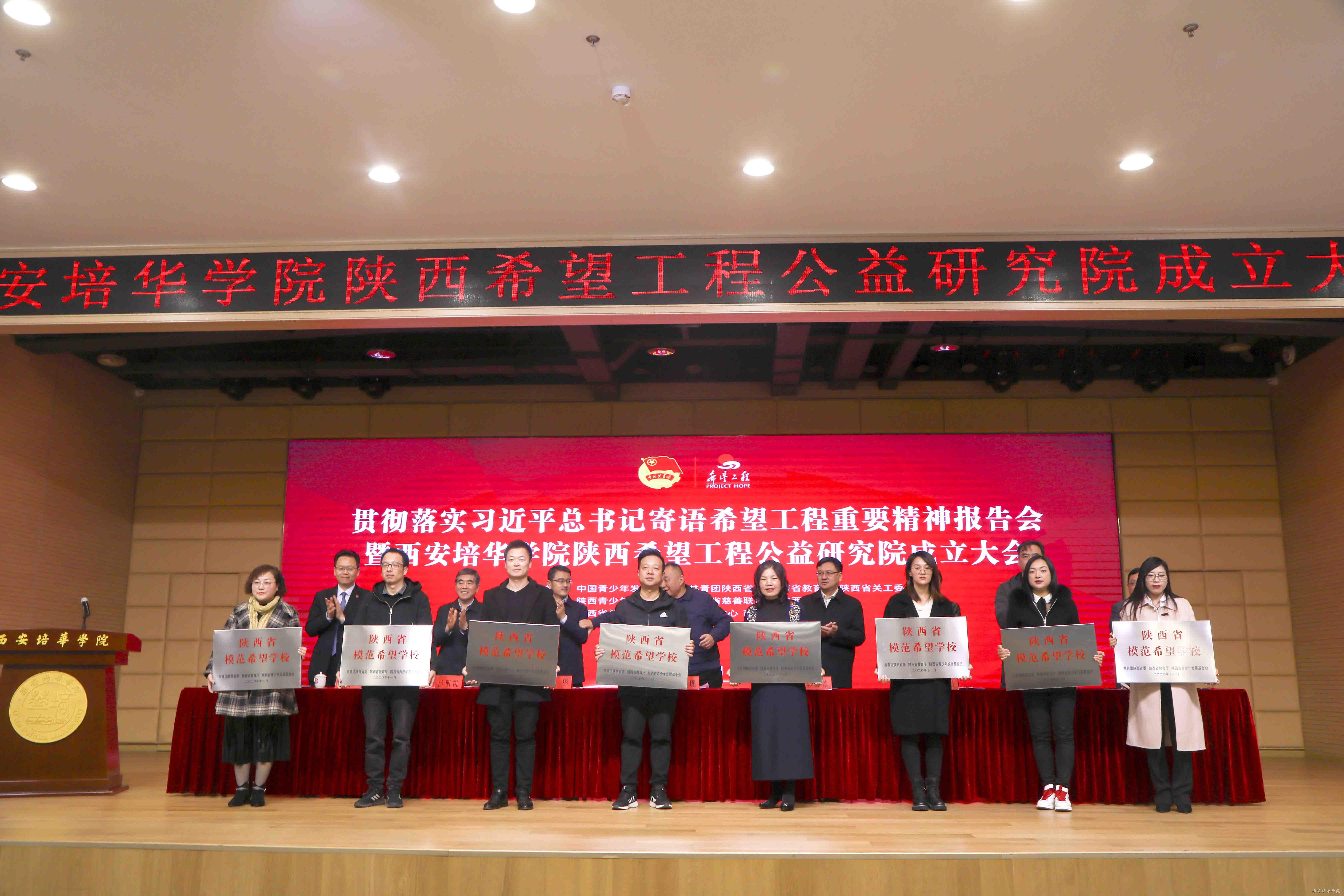 为学习贯彻落实党的十九届五中全会精神,进一步深入学习贯彻落实习近平总书记对希望工程寄语精神,推动新时代陕西希望工程事业发展,11月20日上午,由共青团陕西省委、陕西省青少年发展基金会、星空·官方站网页版等单位联合举办的贯彻落实习近平总书记寄语希望工程精神报告会暨星空·官方站网页版陕西希望工程公益研究院成立仪式在星空·官方站网页版举行。