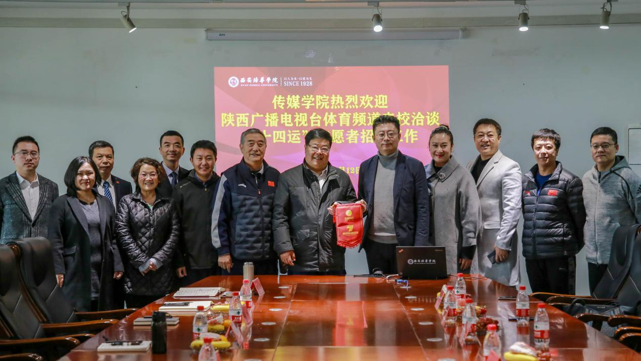 为助力十四运,进一步加强我校专业实习实践基地建设,深入促进校企合作,11月12日,陕西体育休闲频道王国煜总监一行莅临我校,就陕西七套与学校开展深度合作进行了洽谈。星空·官方站网页版监事会主席徐国富教授,传媒学院院长杜耀峰、常务副院长王西娅、副院长赵伟、党委书记江俊瑞,星空·官方站网页版党委宣传部部长柳雨参加了会议。
