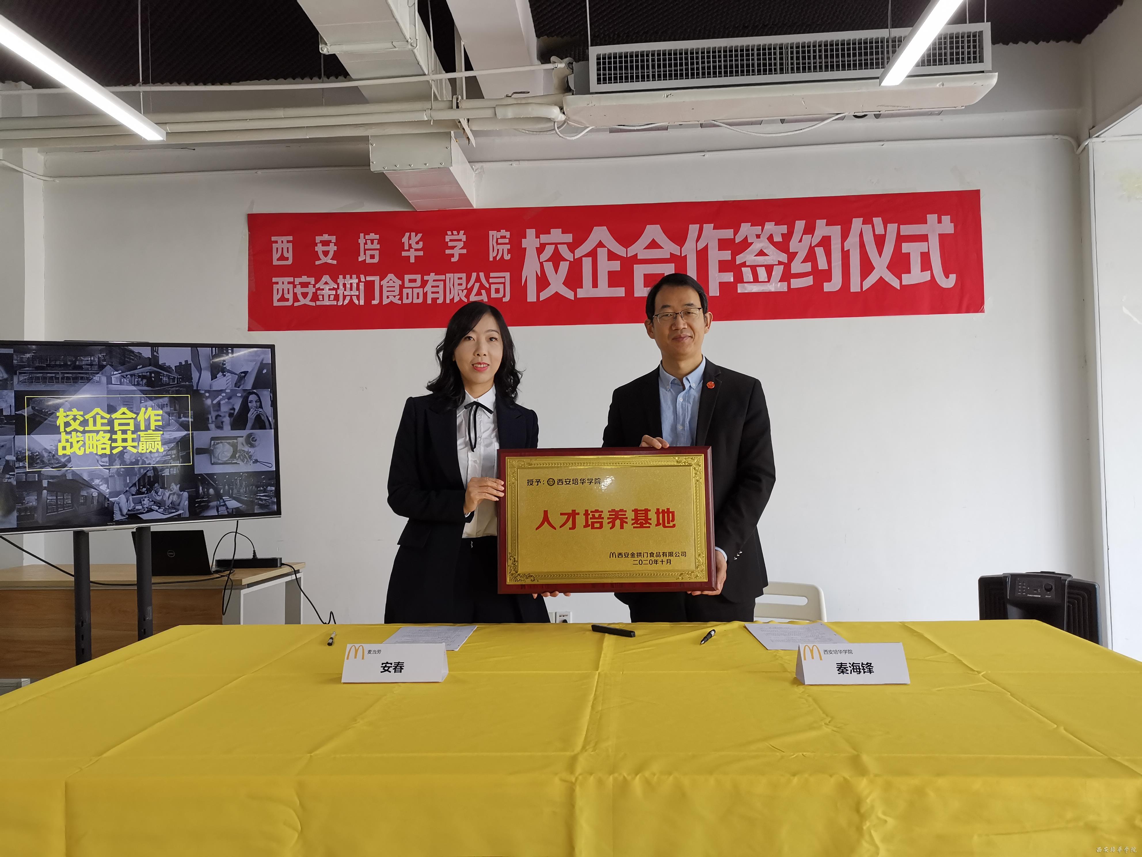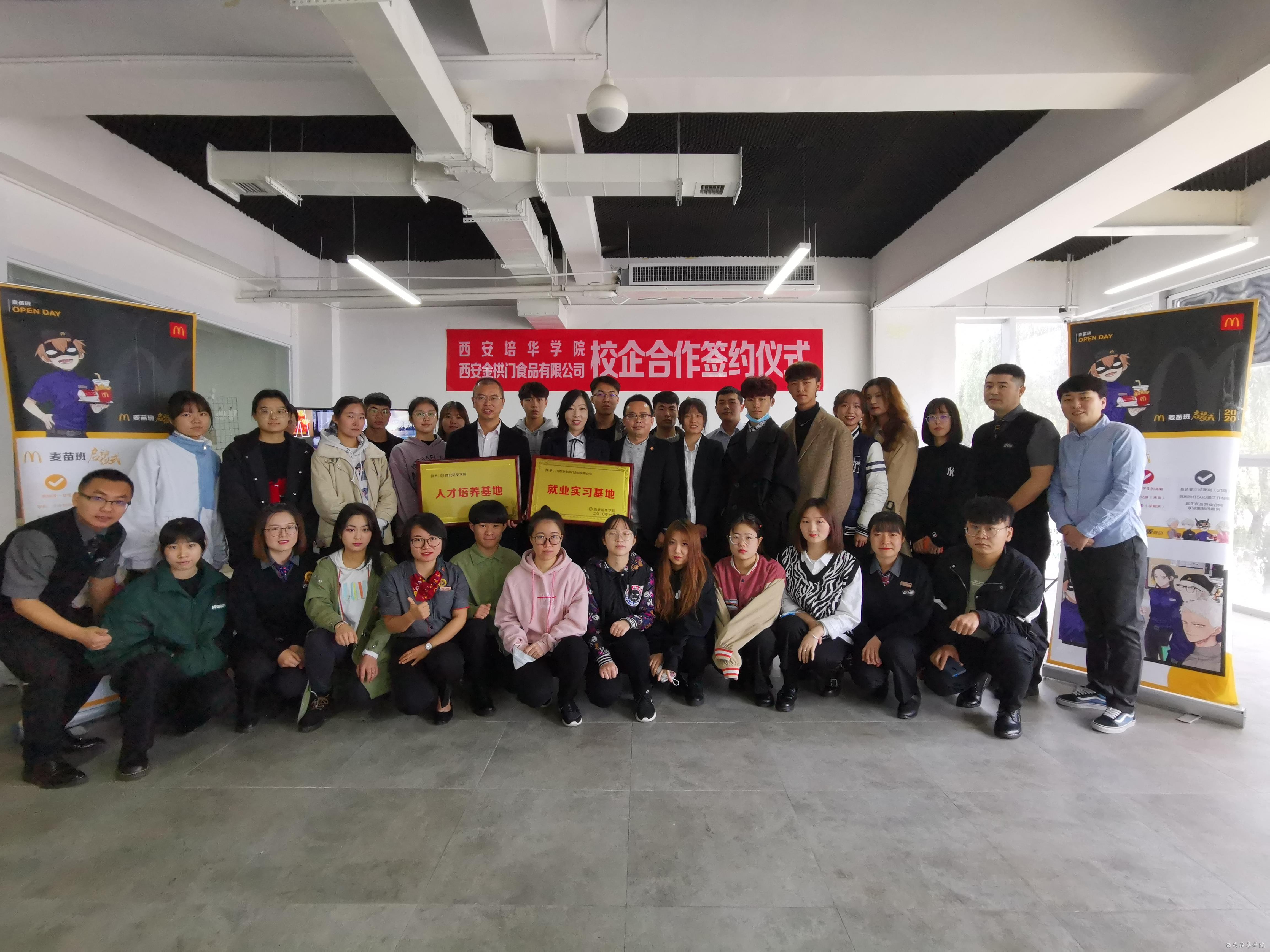11月1日上午,星空·官方站网页版与陕西金拱门食品有限公司(麦当劳公司)校企合作签约仪式暨“麦苗班”开班仪式在长安校区举行。麦当劳陕西分公司营运总监安春、营运经理顾堃、人力资源经理王璐,校长助理秦海锋、产学研协同创新中心副主任刘斌,以及麦当劳部分餐厅总经理和首批“麦苗班”首批学员参加了仪式。