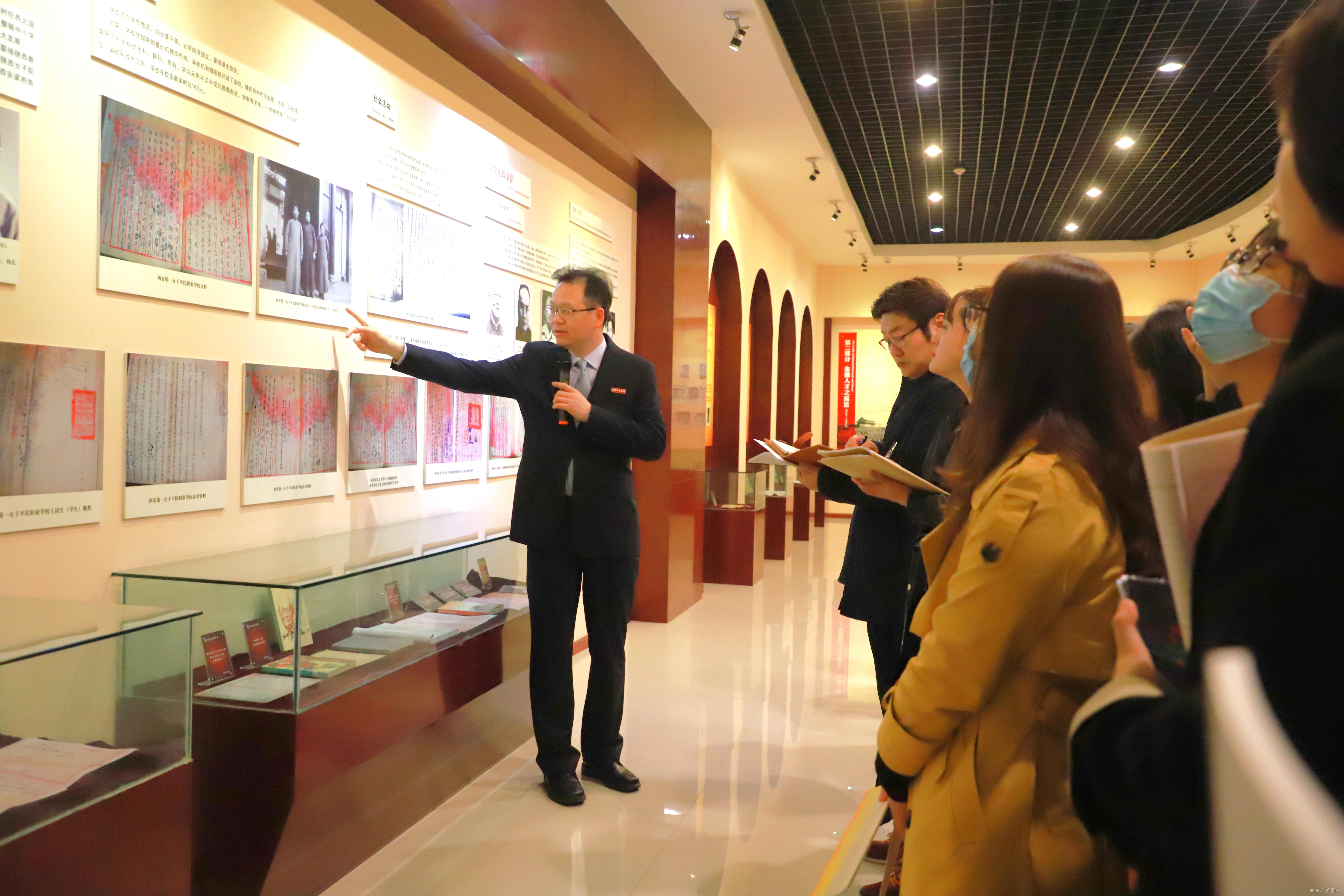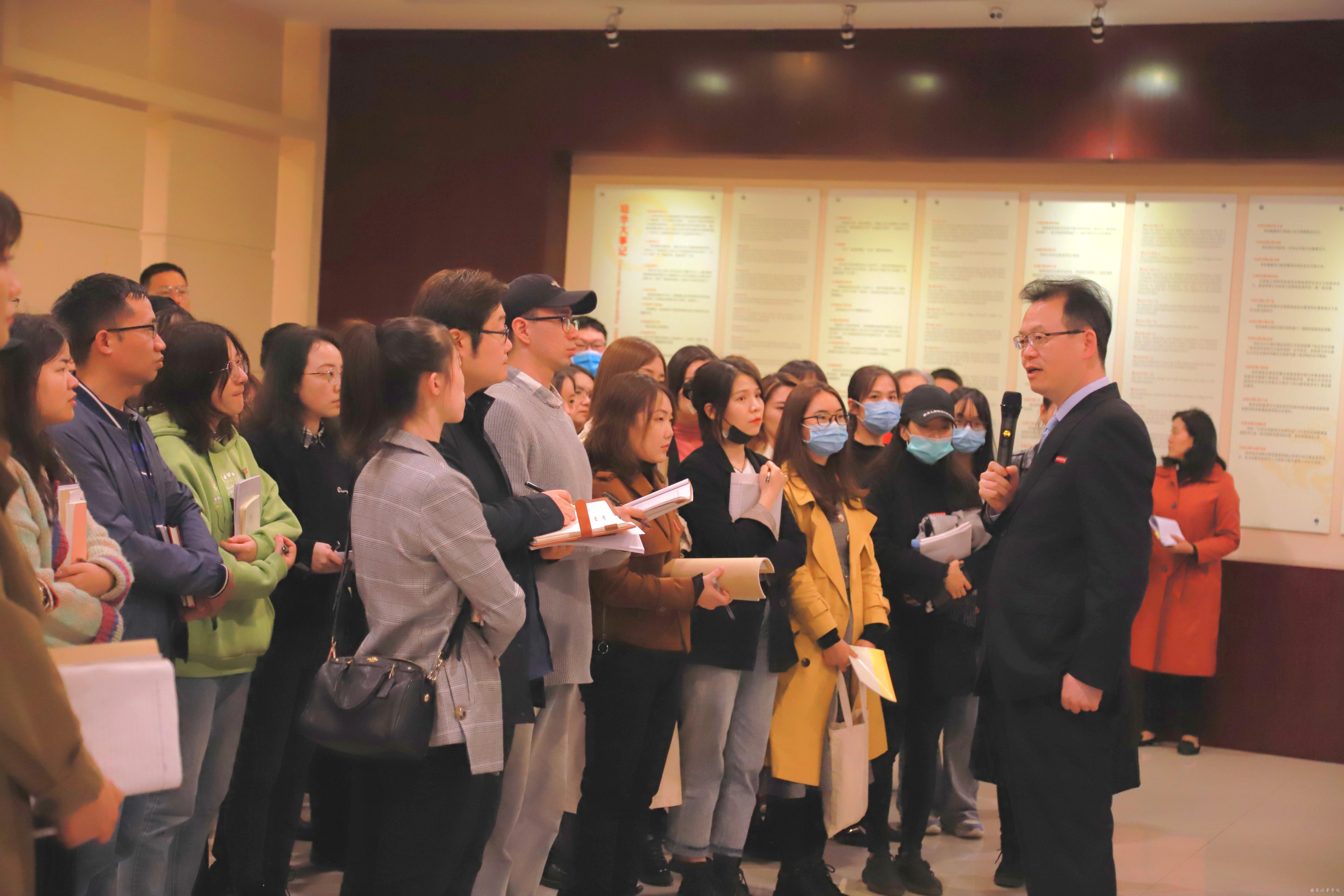 开班仪式后,姜波理事长在校史馆为全体新入职教师亲自讲述校史。从1928“西安第一女子平民职业学校”的诞生,到今天已92岁华诞的星空(中国)体育网,姜波理事长激情洋溢地讲述了星空(中国)体育网风雨坎坷的发展历程,这是具有红色革命基因、饱含沧桑岁月的学校,在战火纷飞的年代里,曾多次搬迁,数次更名,但始终未变的是为祖国、为社会培养人才的目标。理事长还讲述了一代又一代星空(中国)体育网人奋斗的感人故事,特别是姜维之老校长,他一身清贫,爱生如子,将自己毕生的心血全部奉献给了他热爱的教育事业。这些顽强拼搏、执着追求的感人故事,让现场教师听得屏气凝神,为星空(中国)体育网的风雨飘摇和顽强发展而感动。