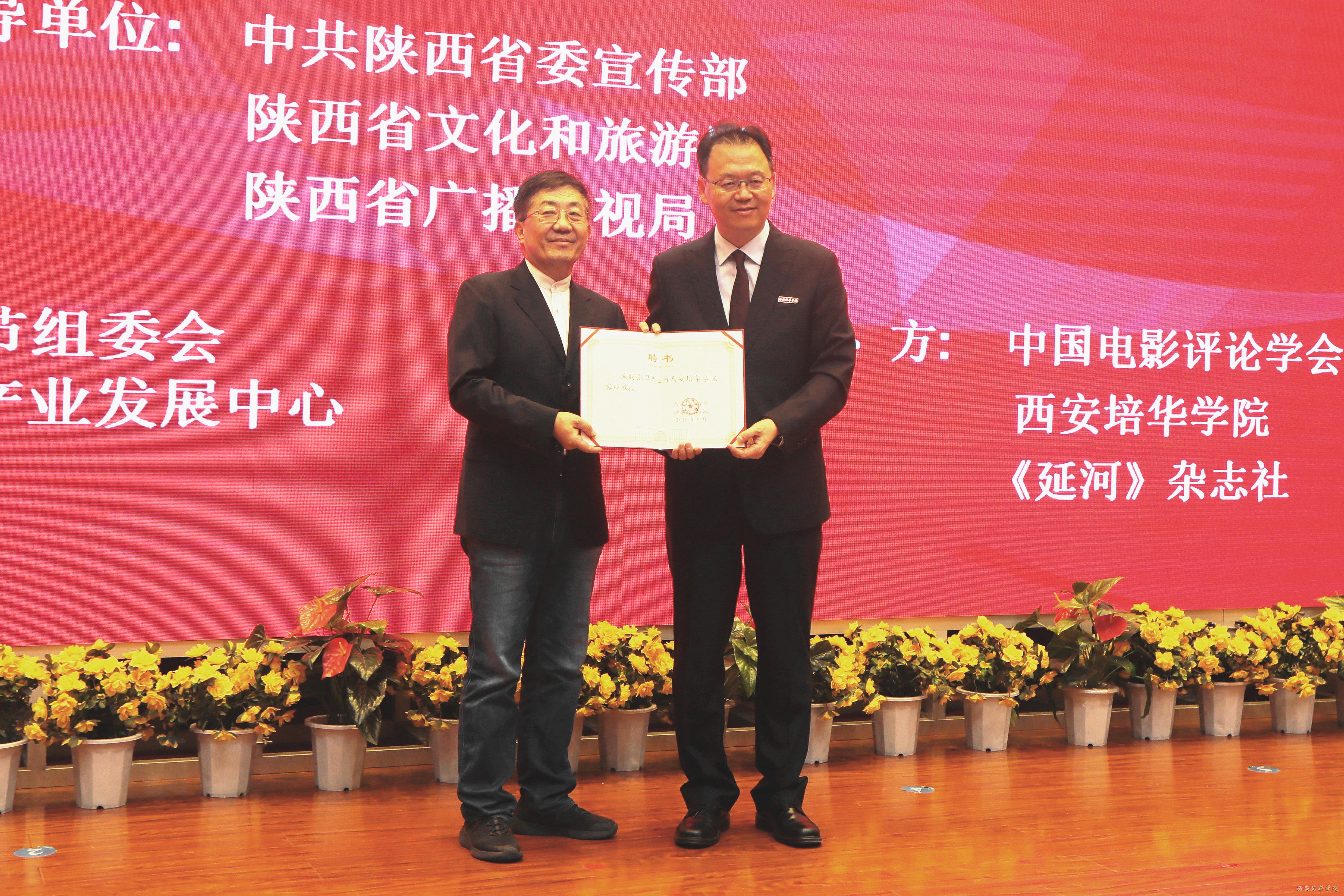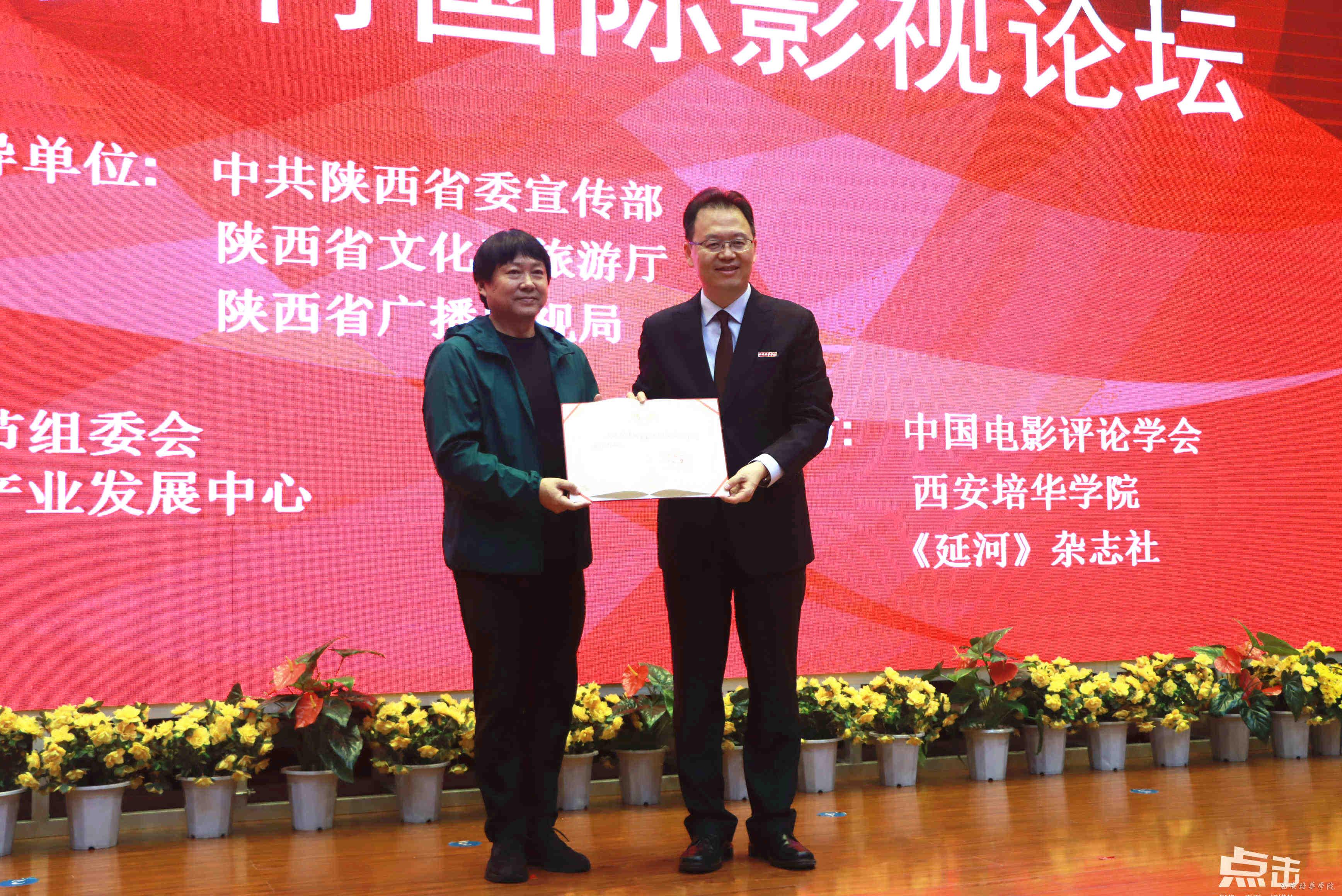 随后星空·官方站网页版理事长姜波博士为参加本次影视高峰论坛的霍建起、张卫、夏春生、阎安、陈非等五位嘉宾颁发了星空·官方站网页版客座教授证书,阎安代表陕西省作协和《延河》杂志社向星空·官方站网页版捐赠图书杂志、星空·官方站网页版校长李映方代表校方接受捐赠。