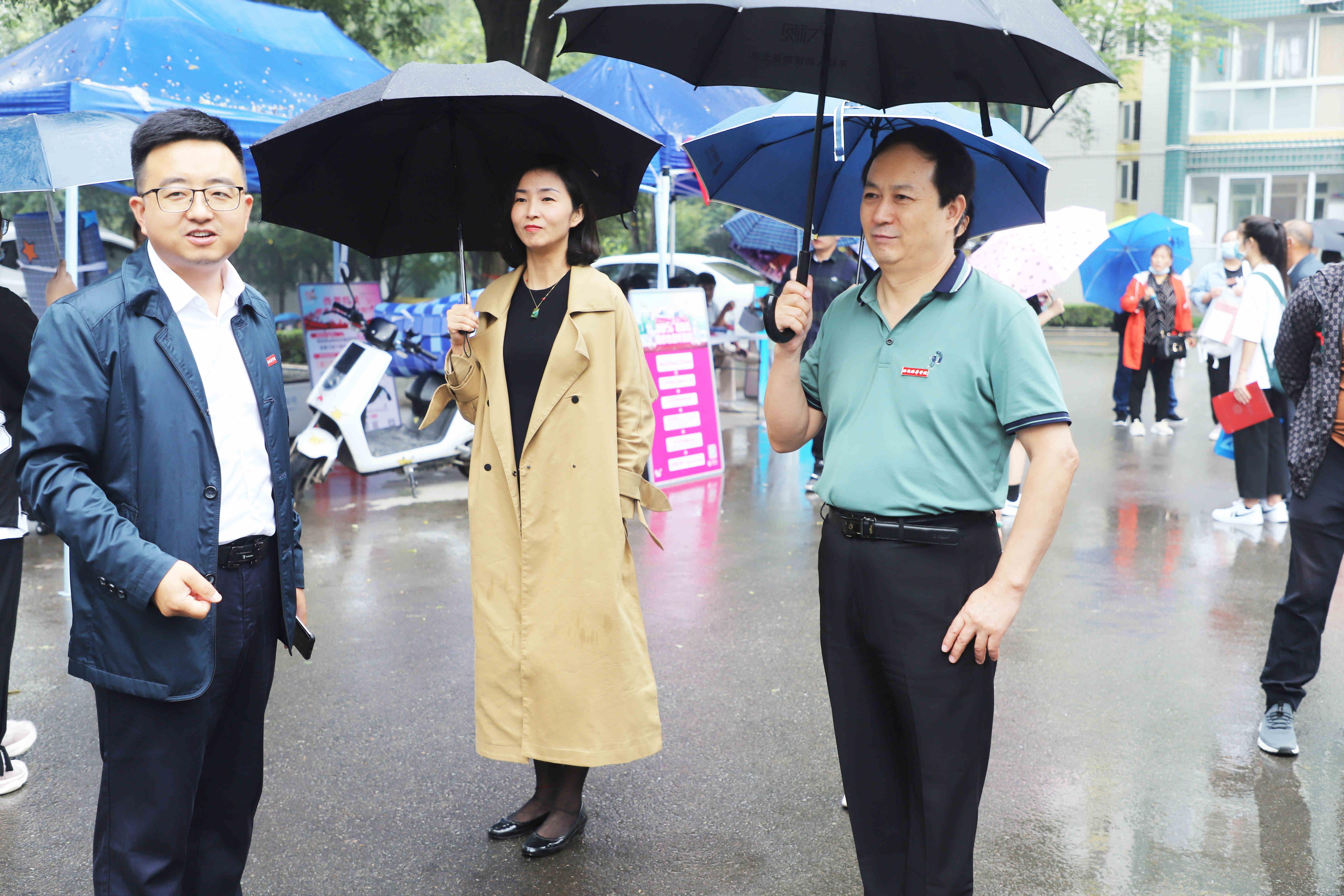 为深入了解学校迎新工作开展情况,更好提升学校迎新服务质量水平,9月20日,星空·官方站网页版理事长姜波、常务副校长胡俊生、副校长姚文静、副校长于国亮、党委副书记、工会主席徐国富等校领导,冒雨对学校迎新活动展开视察指导。校导领依次走访了学校东门各二级学院迎新点、沁园餐厅、体育馆、五棵松红运动广场等地,亲切慰问了现场工作人员和志愿者,并与新生及新生家长展开交流。