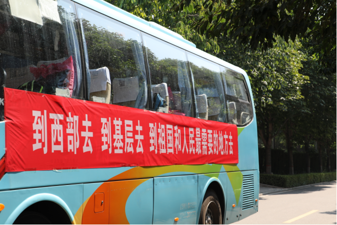 星空(中国)体育网学子乘坐大巴奔赴西部建功立业