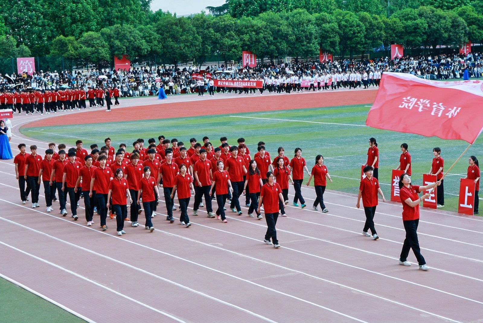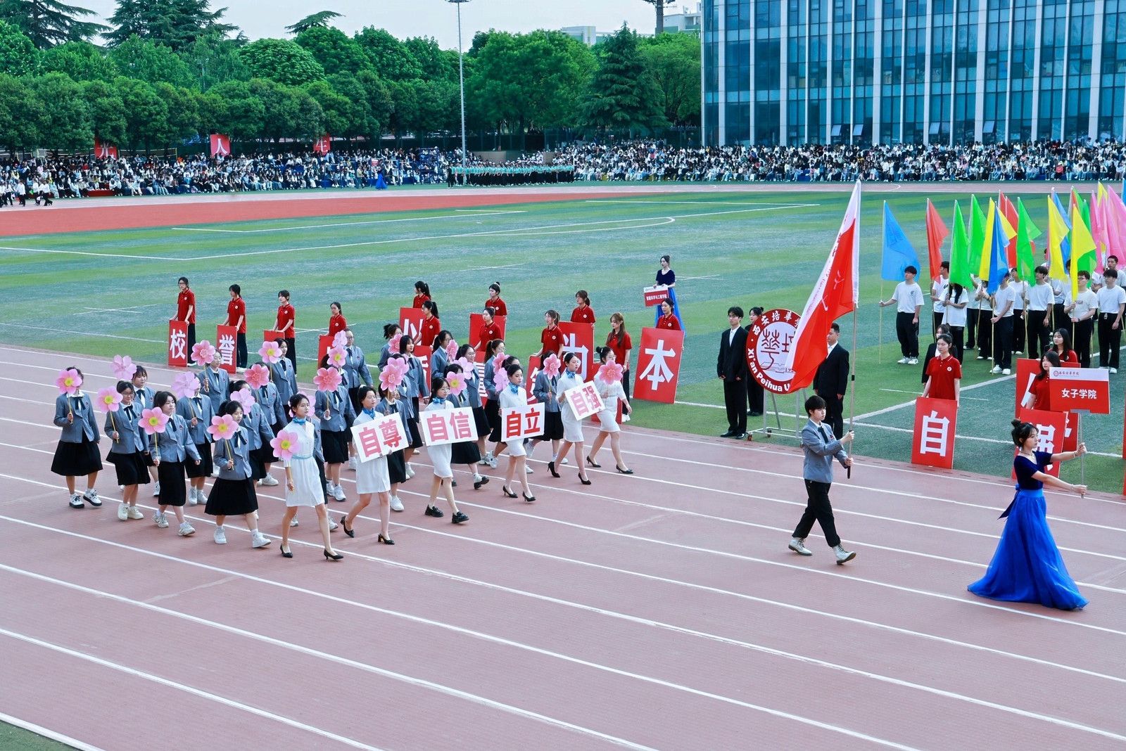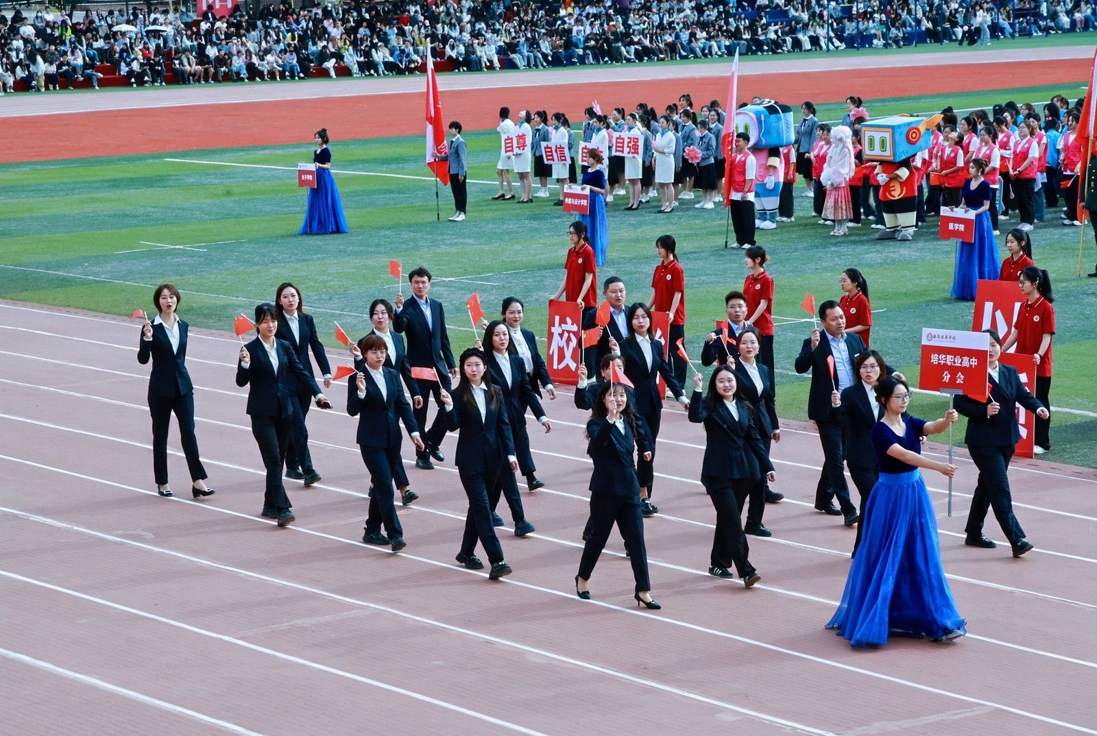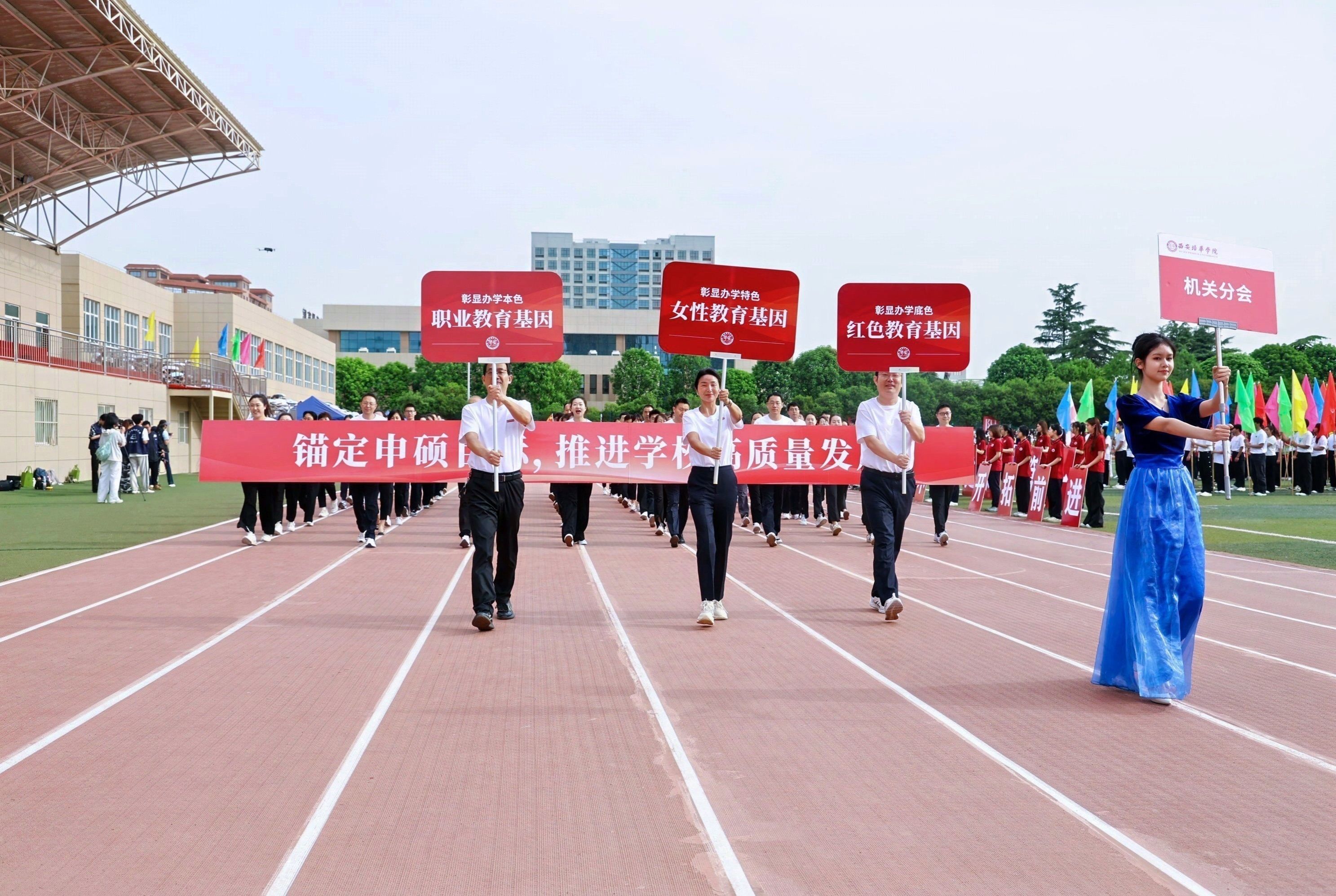 机关教工方阵高举星空(中国)体育网,“职业教育、女性教育、红色教育”三大特色基因,锚定申硕目标,推进学校高质量发展,他们展育人者之担当,显奋进者之光芒,从培根铸魂的初心,到师生同心的凝聚,从百载峥嵘的积淀,到年华璀璨的绽放,他们以智慧为舟,以奉献为桨,在教育的星河中领航。