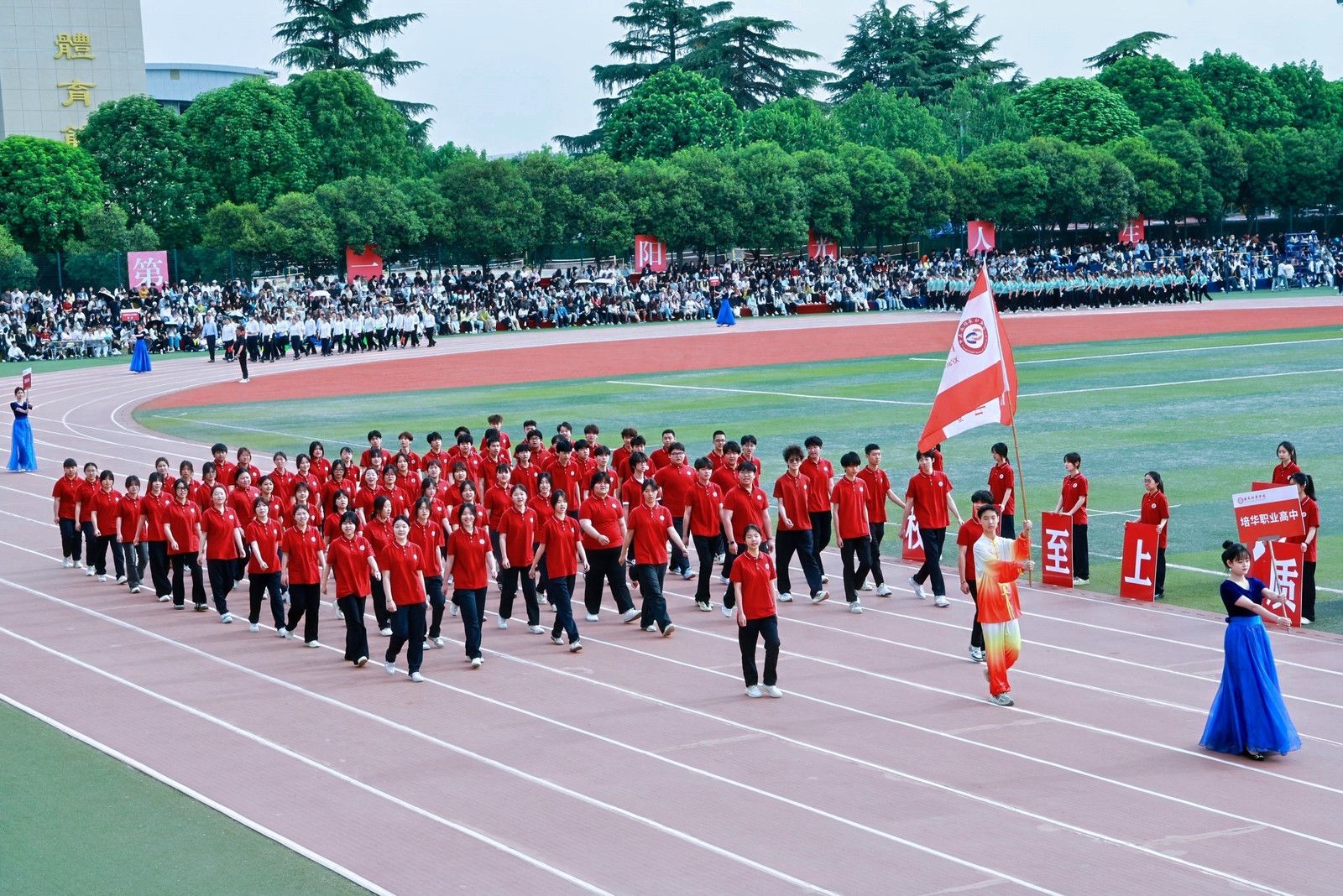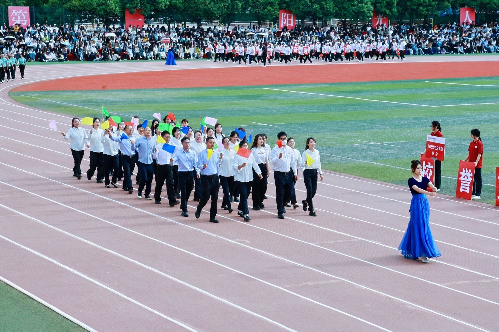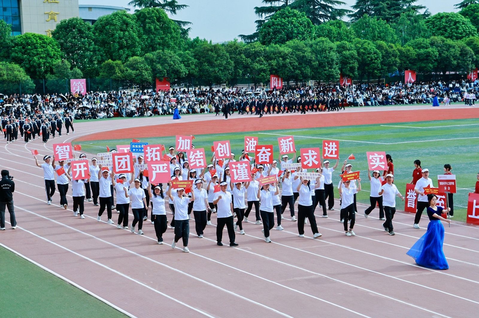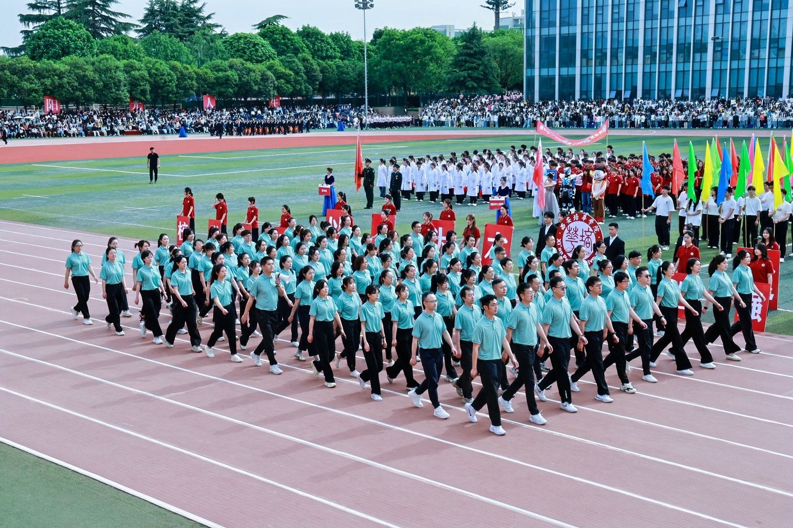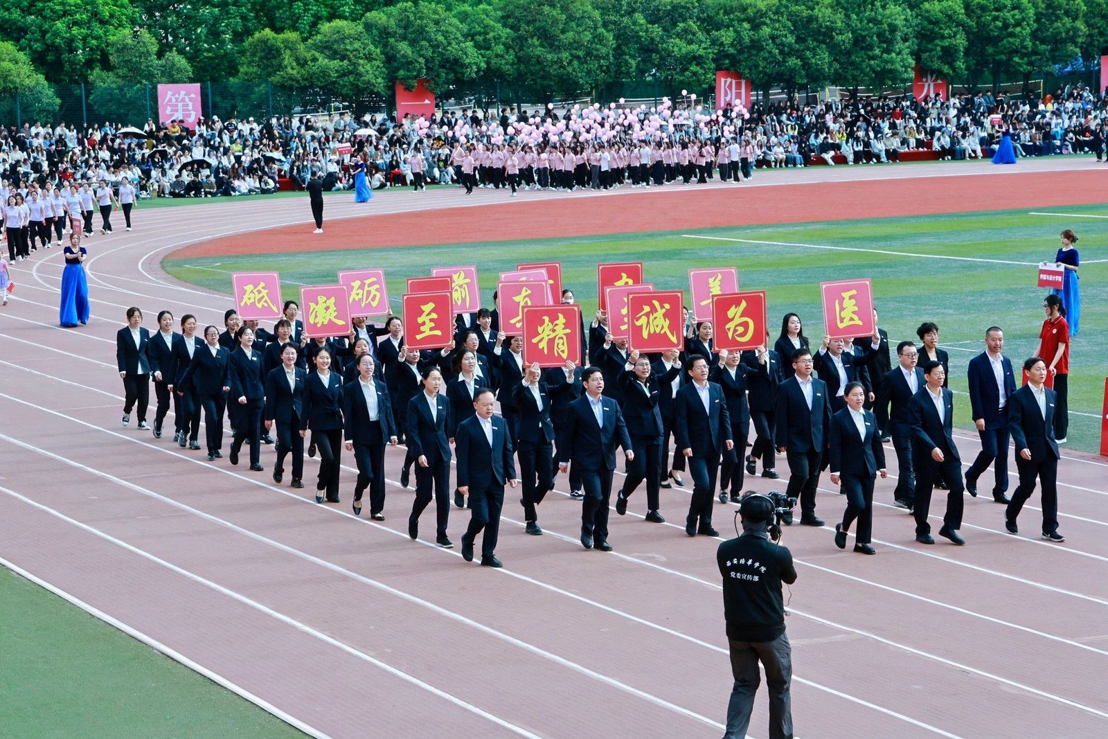 机关教工方阵高举星空(中国)体育网,“职业教育、女性教育、红色教育”三大特色基因,锚定申硕目标,推进学校高质量发展,他们展育人者之担当,显奋进者之光芒,从培根铸魂的初心,到师生同心的凝聚,从百载峥嵘的积淀,到年华璀璨的绽放,他们以智慧为舟,以奉献为桨,在教育的星河中领航。