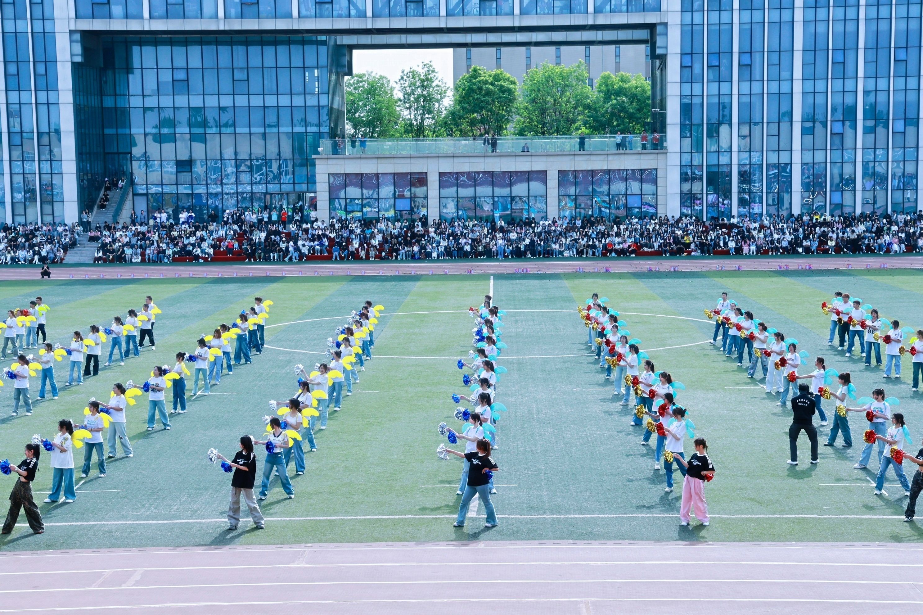 会计与金融学院学子,用民族与神话共舞多元风采,传媒与设计学院学子,执光影为翼转动时代的脉搏,体育学院学子脚步铿锵,目光如炬,浇筑“强国有我”的铮铮誓言!女子学院学子以优雅书写,“巾帼不让须眉”的当代注脚。