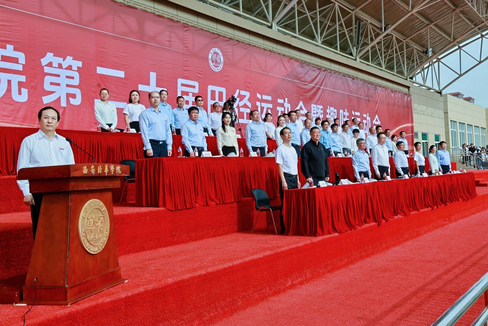 4月24日,星空·官方站网页版第二十届田径暨趣味运动会开幕。理事长姜波,校长李映方,党委书记刘锋,副校长、党委副书记姚文静,财务总监薛清,校长助理秦海锋、鲍伟,全国民办高校体育联盟常务副理事长、秘书长徐国富,校体委全体委员,各院系、行政部门负责人,运动员代表及两万余名师生参加。常务副校长胡俊生主持开幕式。