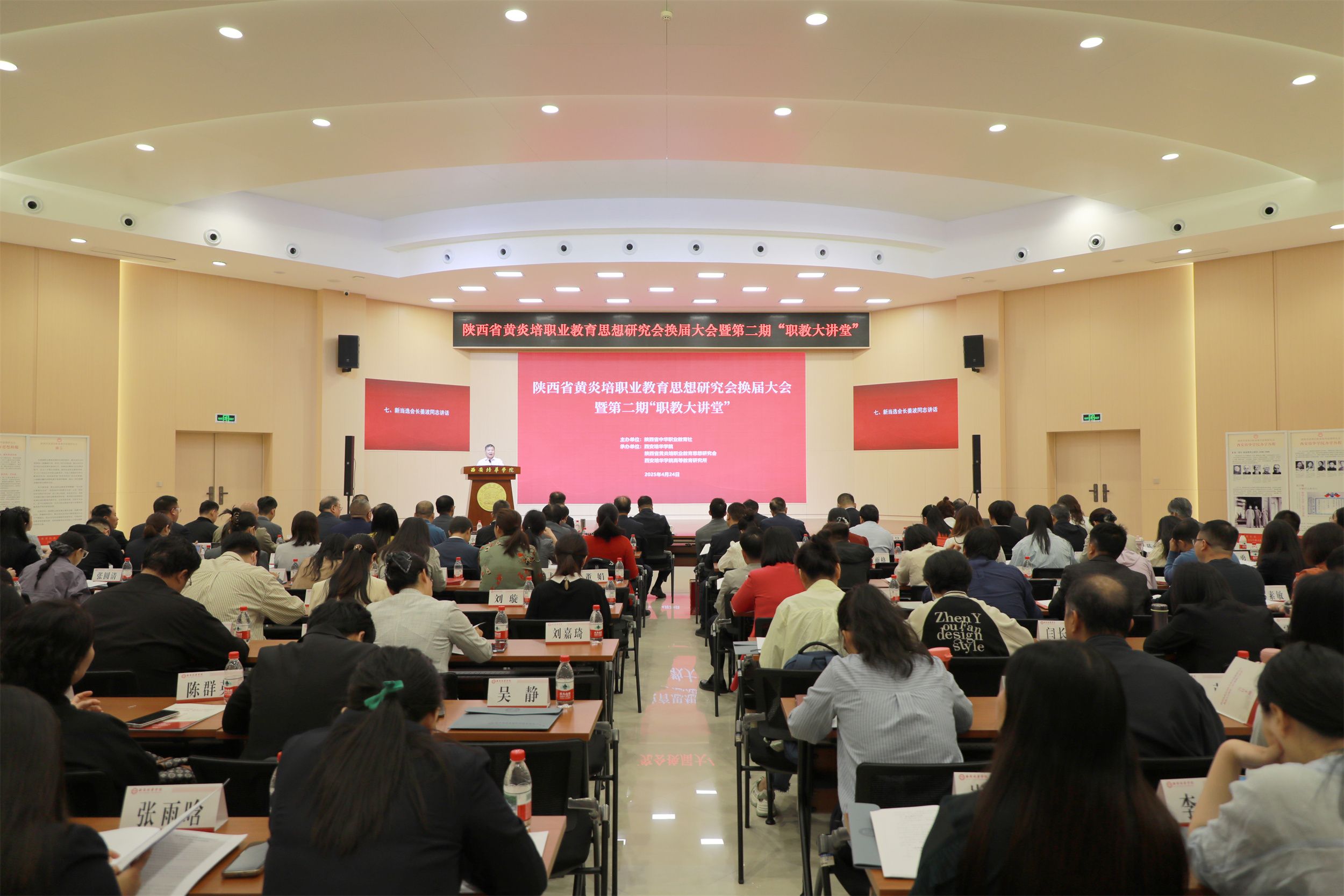 4月24日,陕西省黄炎培职业教育思想研究会换届大会暨第二期“职教大讲堂”在星空·官方站网页版召开。来自省内30余所院校、企业的200余名会员代表参加了会议。星空·官方站网页版当选为会长单位,姜波理事长当选为会长。陕西省政协副主席、陕西省中华职业教育社主任李忠民同志出席会议并讲话。