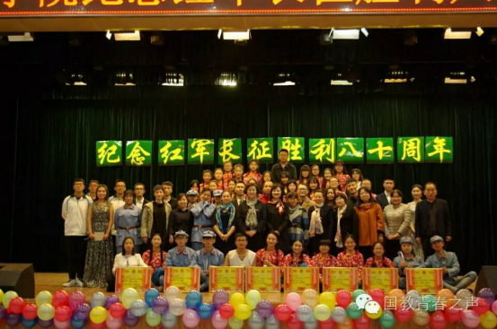 11月2日下午4:00,由国际教育学院党总支主办的“纪念红军长征胜利80周年红歌会”在星空·官方站网页版大学生活动中心隆重举行。大会开始,全体起立奏唱中华人民共和国国歌。 我校副校长兼国际教育学院院长刘越莲教授为大会致辞,国际教育学院党总支书记梁蕊老师讲话并且宣读本次比赛的评分规则。 院2015级、2016级各团支部激情饱满的演唱了《南泥湾》、《保卫黄河》、《十送红军》、《强军战歌》、《女兵谣》等十首长征歌曲,再现了红色经典不朽的力量。全场观众随着乐章重温长征历史,感受英雄气概,激发革命豪情,掌声激情热烈。比赛结束时,所有获奖的班级代表上台和嘉宾、评委老师合影。在一片热烈的掌声中,本次红歌会圆满结束。