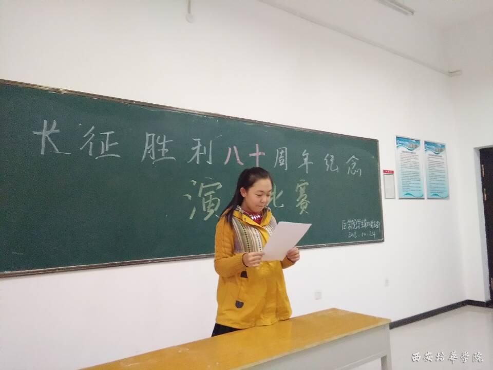 为了纪念红军长征胜利80周年,弘扬和培育学生们的爱国主义情怀,丰富同学们的校园生活,同时为了进一步加强并锻炼学生们的语言组织及表达能力,11月9日16:30,中兴电信学院学生会在明德楼四楼报告厅特举办“我的大学,我的梦”暨“红军长征胜利80周年”演讲比赛。本次演讲比赛旨在培养大学生的爱国主义精神,展现大学生的演讲魅力与青春风采,促进大学生人文素养的提升,鼓励学子为实现自己的人生目标而努力奋斗。这次比赛既是我校科技文化活动的一部分,也是广泛开展培育和践行社会主义核心价值观活动的重要组成部分。