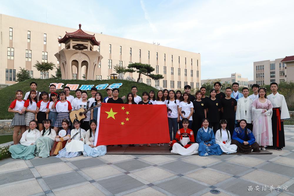 学生社团聚集在一起,我与国旗合个影