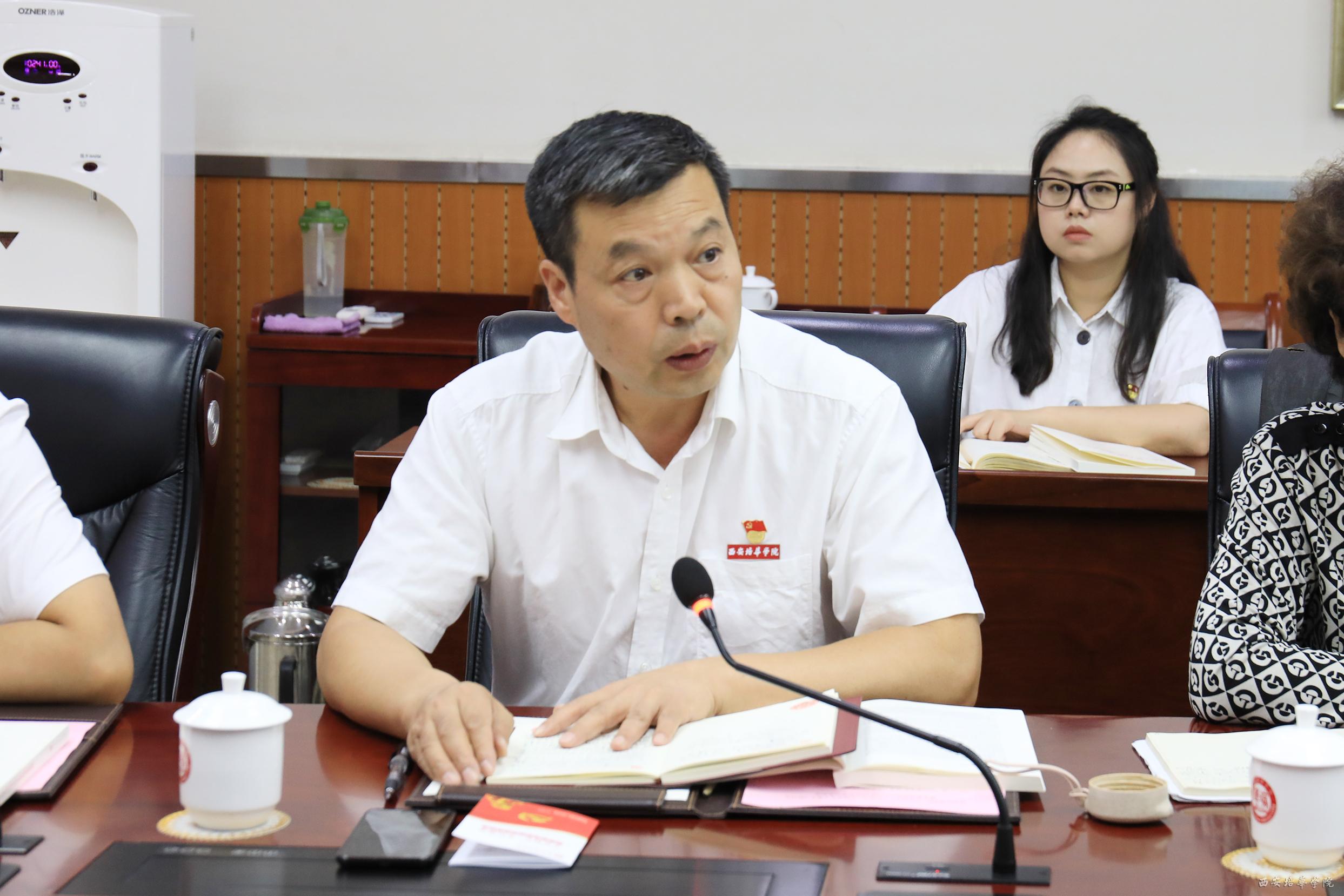 9月29日下午,星空·官方站网页版召开“不忘初心、牢记使命”主题教育专题学习研讨会暨党委理论学习中心组2019年第五次会议,会议由党委副书记徐国富主持,校党委中心组成员、学院党委书记、副书记,党总支书记,全体党支部书记70余人参加了学习研讨。省委教育工委、省教育厅二级巡视员孙建宁,西北大学信息学院党委副书记郝团虎也来校参加了此次会议。