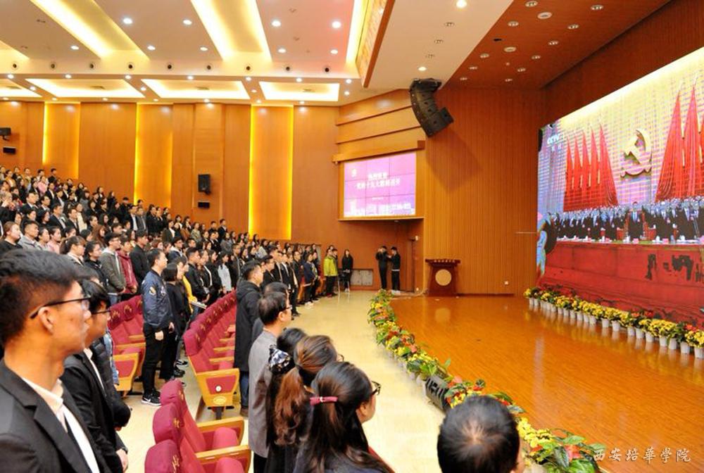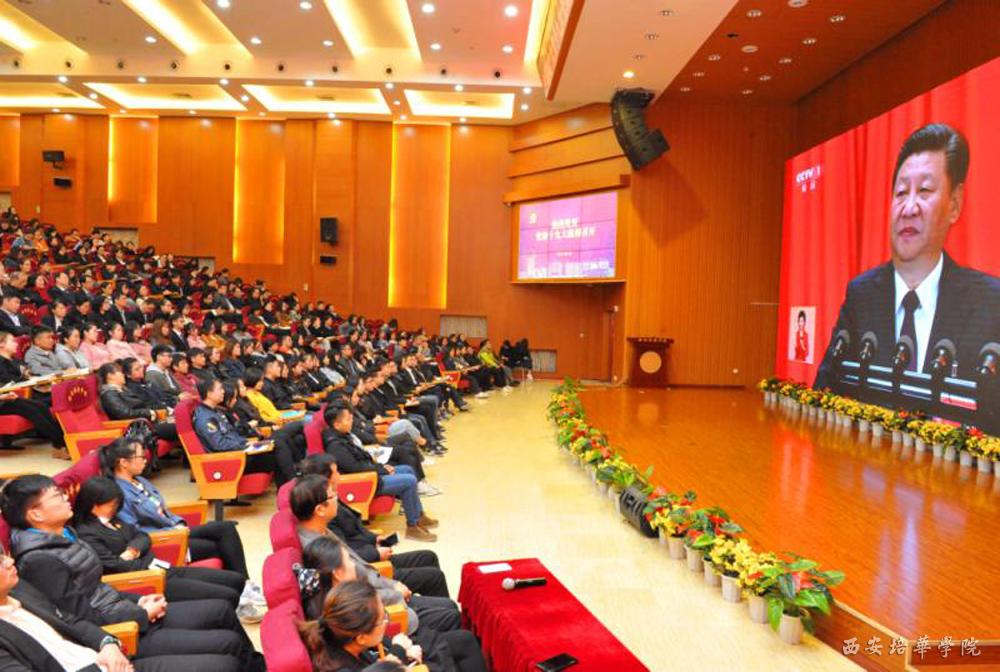 10月18日上午,中国共产党第十九次全国代表大会在北京开幕,我校姜波理事长与校级领导班子成员、中层干部及师生代表等500余人,在维之图书馆集中收看开幕式现场直播。伴随着庄严的国歌,开幕式正式开始,习近平总书记代表十八届中央委员会向大会作工作报告。我校师生认真聆听总书记的工作报告,现场掌声雷动,大家认真做好笔记,领悟学习习近平总书记工作报告精神。