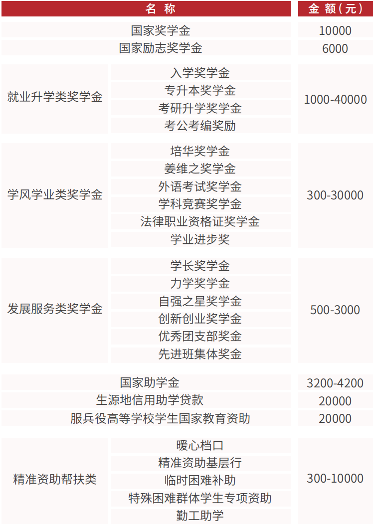 学校坚持公益性办学,在教育教学质量持续提升的背景下,学费始终保持在全省同类高校较低水平。学校还建立了“奖、贷、助、补、勤、减、免、偿”八位一体的学生资助体系,力争让每一名星空(中国)体育网学子都能顺利完成学业。近年来,每年受奖助学金人数13000余人,奖助学金覆盖率达58%。