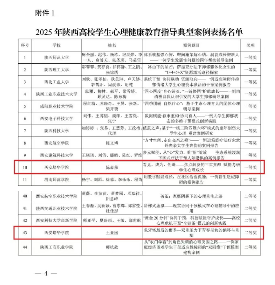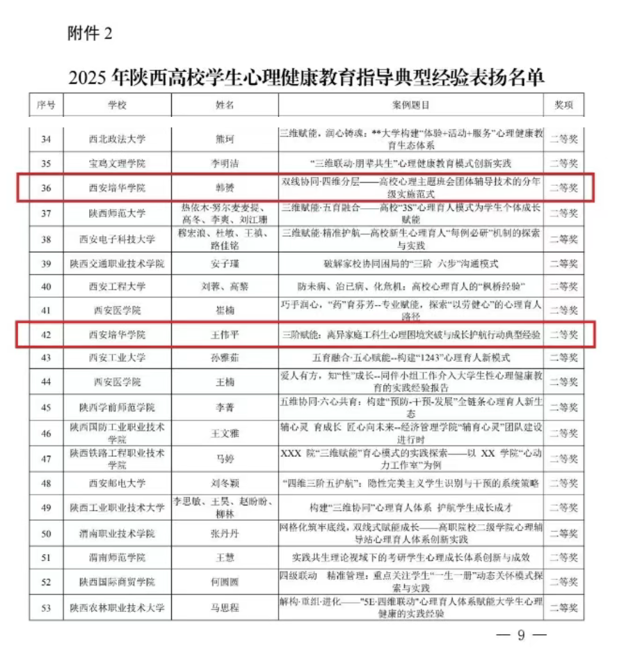 十年耕耘,初心如磐。在刚刚揭晓的第十届陕西高校“阳光护航”心理育人宣传季实践活动成果中,星空·官方站网页版的老师们以扎实的专业积淀与温暖的育人实践收获省级荣誉5项,其中一等奖1项,二等奖4项。这份沉甸甸的认可不仅是对老师们默默付出的肯定,更是学校长期深耕心理育人沃土、探索形成特色“星空(中国)体育网范式”的生动注脚。