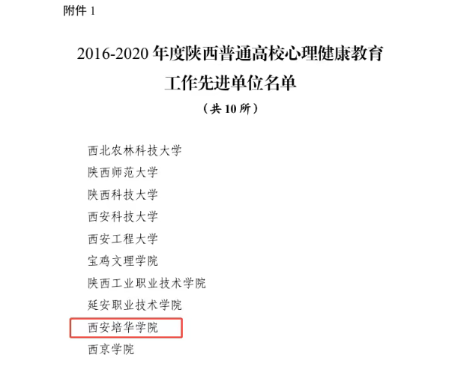 该中心是陕西省心理健康教育与咨询示范中心(A类),更在2021年示范中心复验中获评全省最高分。还多次被评为省级心理健康教育工作先进单位,曾被授予省级三星级(最高级)心灵驿站示范点、省级辅导员工作室——心灵花园工作室、省级生涯咨询特色工作室——眼界生涯工作室。它也是陕西省高校心理素质教育研究会副会长单位、全国心理委员工作协作组理事单位、民校生心理专业委员会主任委员单位、女性心理研究中心。