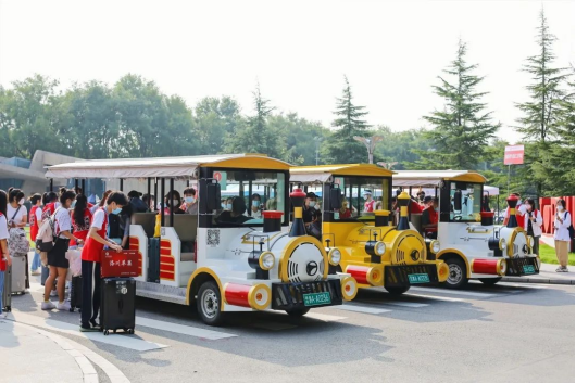 红马甲、小推车、迎新牌、小火车,志愿者的身影,忙碌穿梭在校园的各个地方,全校上下齐动员,热情周到地迎接新同学的到来。
