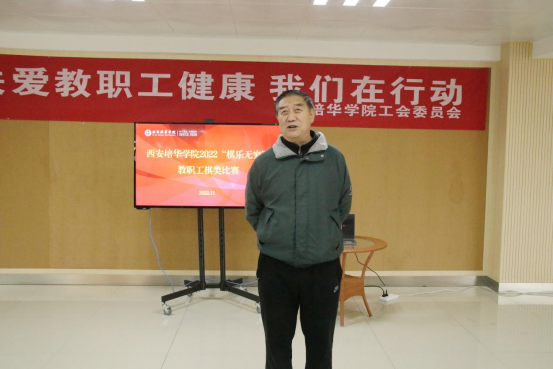 开幕式上,徐国富主席指出棋牌运动在我国有着深厚的群众基础,是既健康又高雅的文化运动,集科学性、知识性、竞技性、趣味性于一体,此次棋类比赛丰富了教职工的业余文体生活,陶冶了情操,增进了学校各部门之间的情感,最后,他希望参赛选手能赛出风格、赛出水平。