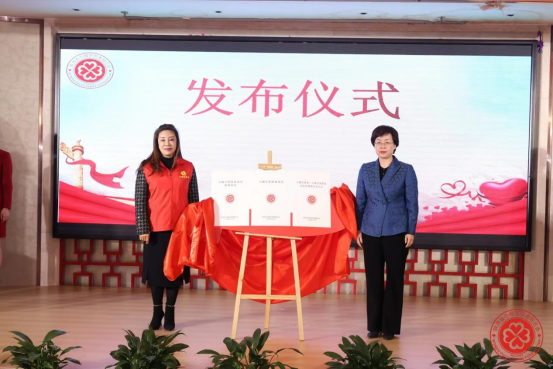 陕西省妇联党组书记、主席王玉娥同志与陕西省巾帼志愿者联合会会长韩玲同志共同颁布