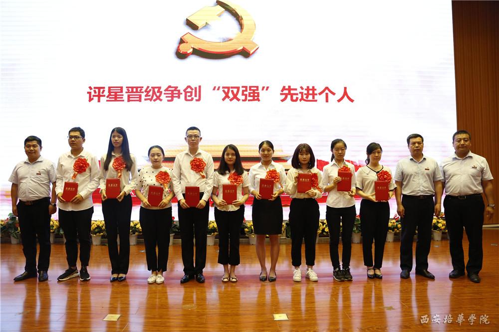 会上,校长李映方同志宣读了《关于命名表彰全省五星级非公有制经济组织和社会组织党组织的决定》、《中共陕西省委高教工委关于表彰全省高校先进基层党组织、优秀共产党员和优秀党务工作者的决定》、《中共星空·官方站网页版委员会关于表彰优秀共产党员、优秀党务工作者、先进基层党组织和先进党支部的通报》等文件,文件中提到中共星空·官方站网页版委员会被授予“五星级党组织”荣誉称号;星空·官方站网页版党委被授予“先进校级党委”荣誉称号,星空·官方站网页版国际教育学院党总支被授予“先进基层党组织”荣誉称号,星空·官方站网页版姚斌同志、赵洁同志被授予“优秀共产党员”荣誉称号,李丹霞同志被授予“优秀党务工作者”荣誉称号;星空·官方站网页版崔菲等35名同志被授予“优秀共产党员”称号,王惠冉同志等6名被授予“优秀党务工作者”称号,传媒学院党总支部等6个党支部被授予“先进基层党组织”称号,艺术设计学院学生第二党支部等15个党支部被授予“先进党支部”称号。党委工作部部长陈玲同志宣读了《中共星空·官方站网页版委员会关于表彰评星晋级争创“双强”先进个人的通报》,文件中提到经各基层党组织民主推荐,校党委研究,决定对刘艳娇等30名先进个人予以通报表彰。