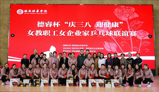 为庆祝第113个“三八”国际劳动妇女节,更好地凝聚自信自强、守正创新的精神力量,团结动员广大女职工踔厉奋发、勇毅前行,在陕西省妇女联合会指导下,3月3日下午,学校与陕西省女企业家协会联合举办德睿杯“庆三八 迎健康”女教职工女企业家乒乓球联谊赛在体育馆举行。陕西省妇联党组成员、副主席张晓燕,二级巡视员崔志伟出席开幕式。开幕式由学校工会副主席、体育学院副院长马德厚主持。校党委副书记、副校长、妇联主席姚文静致开幕词。