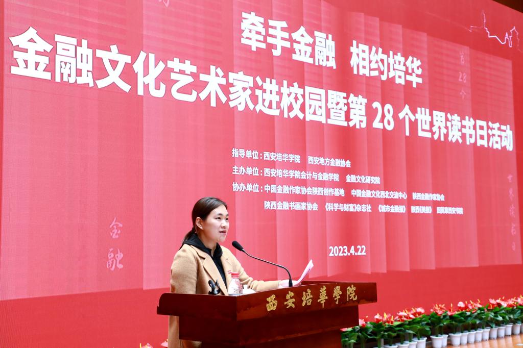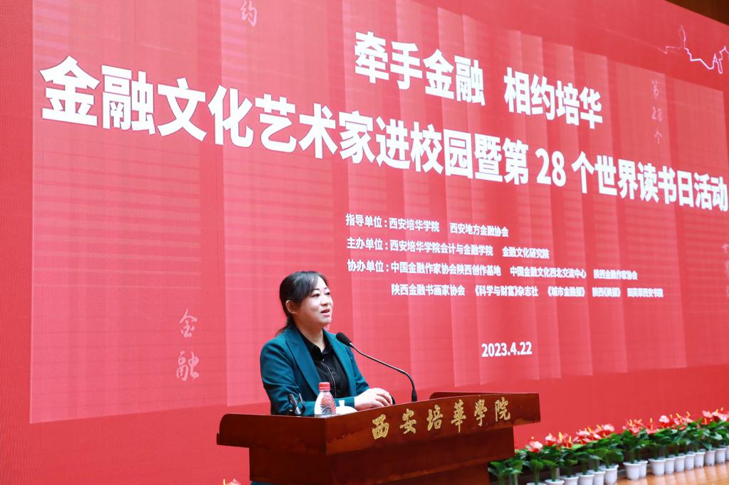 4月22日,“牵手金融,相约星空(中国)体育网”文化艺术家进校园暨第28个世界读书日活动在星空·官方站网页版举行。本次活动由星空·官方站网页版会计与金融学院、金融文化研究院主办,西安地方金融协会会长王西省,陕西省诗词学会常务副会长商子秦,西安交通大学高培中心主任黎荔等出席会议并致辞。
