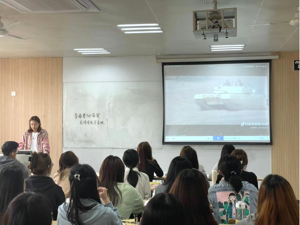 来自人文与国际教育学院英语专业的王悦同学,曾服役于驻新疆军区某部担任一号台话务员,它为大家详细分享了参与中印“加勒万河谷冲突”事件冲突背后的感人事迹,以及她们护送为国捐躯的写下“清澈的爱,只为中国”的陈祥榕等4位烈士遗体背后的感动瞬间。其中,最令同学们泪目的是烈士陈祥榕的母亲问部队领导“我儿在战场上勇敢吗?”时给予的肯定回答“令郎之勇,勇冠三军。信仰之坚定,可胜昆仑。”