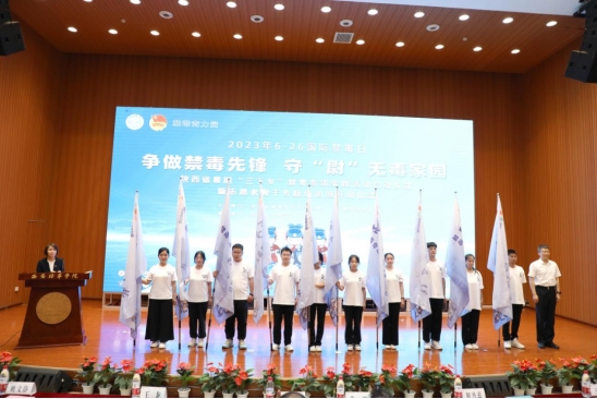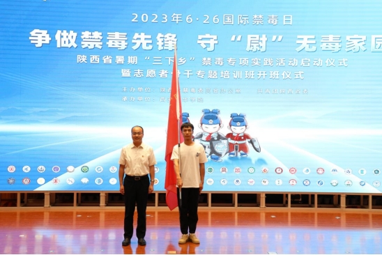 徐永胜书记为陕西省“禁毒青力量”暑期“三下乡”专项实践志愿服务队授总旗。