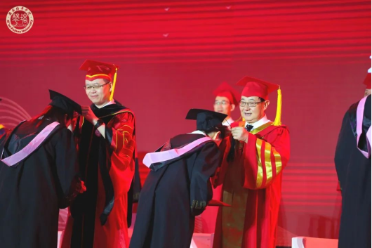 校领导为毕业生代表颁发毕业证书、学位证书,并拨穗授礼,送上最美好的祝福。