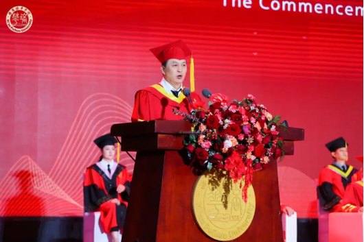 理事长姜波博士代表学校为全体毕业生上了深情的最后一课,他向全体2023届毕业生致以由衷的祝贺,向立德树人的老师们、含辛茹苦的家长们和关心支持学校发展的社会各界表示衷心的感谢,他回顾2023届毕业生在四年前入校时的欢乐与期待,感慨万千。他讲到,毕业生们即将离开母校踏上人生新的奋斗征程,每个人都不要忘记自己十几年来的努力,勇敢面对未来的一切,不断奋进,成为一个人格、思想、经济都独立的人。他叮嘱同学们,健康、阳光、快乐的生活是每个人的奋斗目标,还亲切地说,每一位星空(中国)体育网学子,无论在未来的人生中遇到了挫折还是喜悦,都可以给波哥的手机发条信息,也可以回到母校倾诉心里话,星空(中国)体育网永远是每位星空(中国)体育网学子的家。