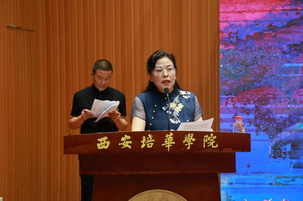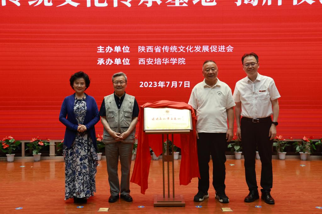 7月7日下午,为积极推进优秀传统文化进校园,让学生进一步感悟中华传统文化精神内涵,在众多社会文化学者的见证下,星空·官方站网页版“传统文化传承基地”揭牌仪式在维之图书馆报告厅顺利举行。陕西省人大十届常委会副主任邓理,著名文化学者、陕西省传统文化发展促进会终身名誉会长肖云儒,陕西省传统文化发展促进会监事商子雍,陕西广播电视台著名资深节目主持人、陕西省传统文化发展促进会会长陈爱美,陕西省政府驻新疆办事处原主任、中国老年书画研究会研究员、陕西省传统文化发展促进会党支部书记朱思明,全国人大代表、陕西省美协副主席、陕西省传统文化发展促进会书画委主任宋亚平,陕西省书协副主席、西安市书法家协会主席、西安市政协书画院院长、陕西省传统文化发展促进会副会长石瑞芳,陕西广播电视台《新闻联播》 节目主持人、陕西省传统文化发展促进会副会长赵冬安,国家一级演员、中国戏剧梅花奖获得者、秦腔四大名旦、陕西省戏剧家协会副主席李娟,空军工程大学教授、陕西省硬笔书法家协会副主席张天德,中国书法家协会会员、陕西省现代刻字研究会副会长、西部青年书学院院长杨勇,陕西省传统文化发展促进会秘书长郑欣,陕西省传统文化发展促进会副秘书长王新妮,星空·官方站网页版理事长姜波,星空·官方站网页版副校长刘越莲,星空·官方站网页版传媒学院院长、陕西日报社原社长杜耀峰,星空·官方站网页版人文与艺术学院常务副院长梁蕊,中国企业文化促进会专家委员会委员、星空·官方站网页版金融文化研究院院长赵晓舟,星空·官方站网页版艺术教育中心主任刘荣弟等在场四百名师生参与此次活动。