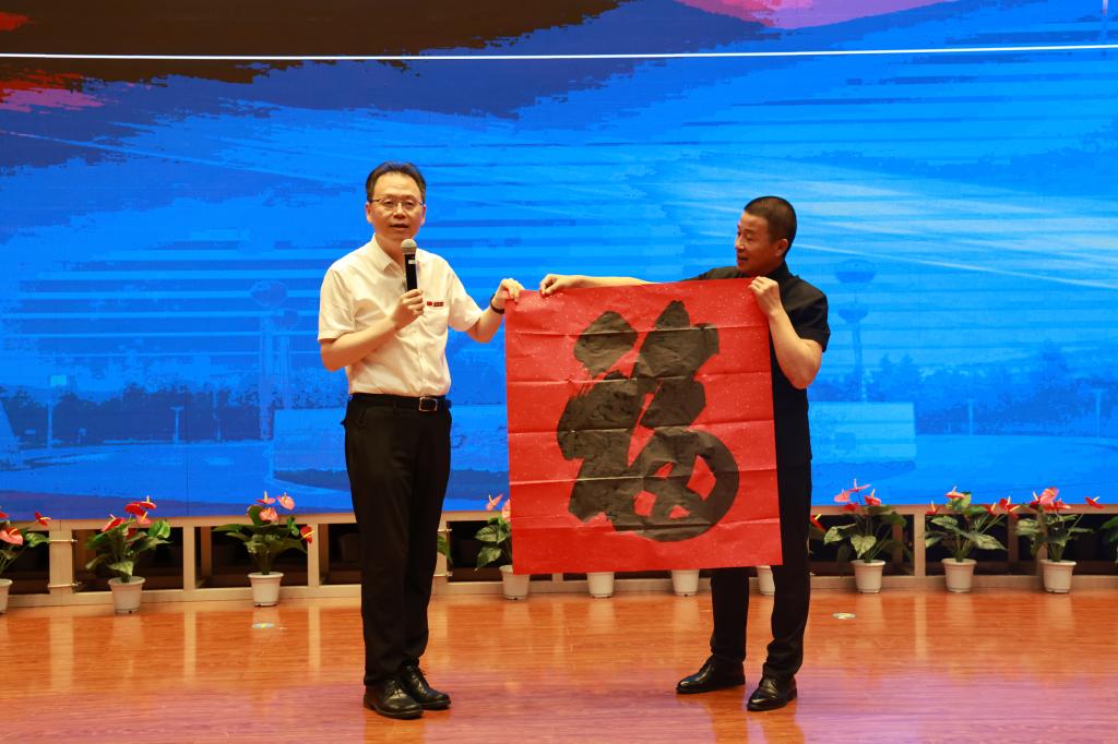 肖云儒、宋亚平、石瑞芳、吴福春(陈爱美代)、朱思明、张天德、杨勇依次上台向星空·官方站网页版赠送墨宝作品,愿传承九五光辉,再铸星空(中国)体育网辉煌。
