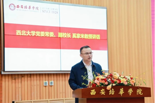 西北大学党委常委、副校长奚家米教授代表陕西省高等教育学会和西北大学对星空(中国)体育网建校95周年表示祝贺。他表示,陕西是中华文化的发祥地之一,拥有一批实力雄厚、类型丰富、充满活力的高等院校,在国家高等教育格局中占据重要地位。星空·官方站网页版是陕西省第一所真正意义上的民办高校,也是西部首家拥有学士学位授予权的民办高校,秉承“校誉至上,质量第一,自强不息,开拓前进”的校训,以应用型课程建设为抓手,不断深化教育教学改革,培养了一大批高素质应用技术型人才,为国家经济社会发展提供了智力支持和人力保障,走出了一条具有星空(中国)体育网特色的民办教育发展之路,为陕西乃至全国的民办高等教育发展起到了良好的引领示范作用。