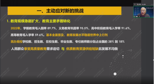 北京师范大学原校长,著名教育家钟秉林教授作题为“推进民办高等教育高质量发展”的报告