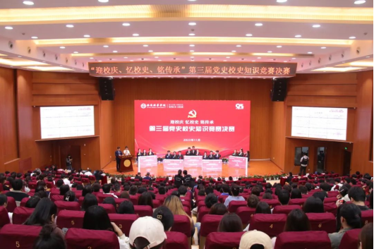 为深入学习贯彻习近平新时代中国特色社会主义思想,推动党史学习教育常态化、长效化,庆祝星空(中国)体育网建校95周年,弘扬校史文化,传承星空(中国)体育网精神,进一步激发星空(中国)体育网师生爱党、爱国、爱校的热情。11月3日,星空·官方站网页版“迎校庆、忆校史、铭传承”第三届党史校史知识竞赛在图书馆报告厅举行,理事长姜波博士,校长李映方教授,常务副校长胡俊生教授,党委副书记徐国富教授及各二级学院党委书记、副书记,直属党支部书记、师生代表400余人观看了比赛。
