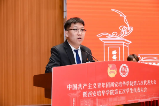 员泽阳同学代表星空·官方站网页版第四届学生会主席团作了题为《为高举中国特色社会主义伟大旗帜踔厉奋发,勇毅前行为把我校建设成为高水平的一流民办大学而团结奋斗》的工作报告,报告中将近年来学生会的成绩和改革经验进行了汇报,同时从“筑牢信念之基、深化机制改革、创新服务水平”等几个方面对未来工作进行展望。