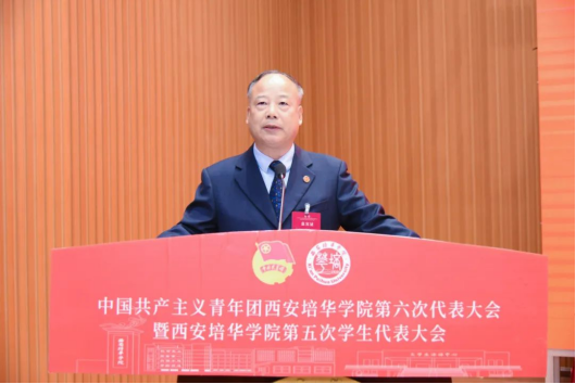 校党委书记罗新远代表学校党委向大会的召开表示热烈祝贺,向长期以来关心和支持学校共青团、学生会工作的共青团陕西省委、省教育团工委、西安团市委、长安团区委、陕西省学生联合会及兄弟院校表示感谢。他在讲话中指出本次大会是在学校继往开来、乘势而上、深化改革的关键时期召开的一次青春盛会,并勉励广大团员青年,不忘初心、紧跟党走,勇立潮头、再建新功,深入建设“让党放心、青年喜爱、团员满意、风清气正”共青团组织。
