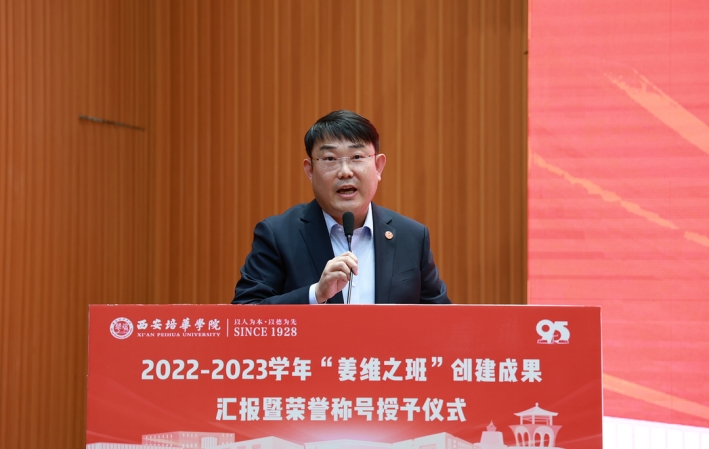 理事长姜波博士肯定了“姜维之班”历年来的创建成果和不菲成绩,同时对创建过程中付出辛勤努力的职能部门老师、辅导员老师、学业导师及各位同学表示衷心的感谢。同时提到以下三点:一是保持初心、砥砺前行。不忘星空(中国)体育网历经百年的风雨历程,坚守维之精神的初心和信仰,将“姜维之精神”与时代同频共振,接续奋斗;二是脚踏实地、肩负重任。星空(中国)体育网青年应挺膺担当,聚焦专业学习,提升综合素质;三是立足星空(中国)体育网建校百年新征程,号召全体星空(中国)体育网人一道为建设全国一流高水平民办大学贡献智慧力量。